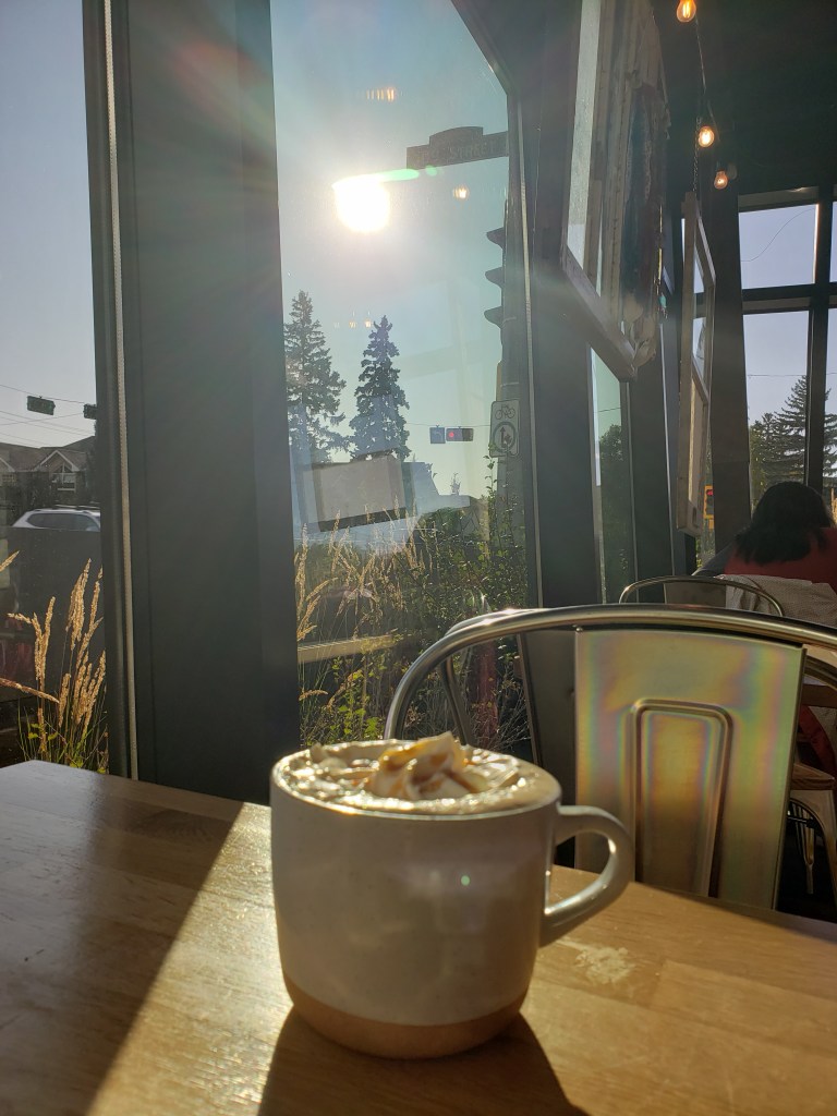 It’s funny how my mind can be at its quietest moment in a noisy little coffee shop. If you pay attention, you can hear the symphony of espresso machine buzzing, glassware being struck by metal spoons, people laughing and chatting over the background music and the occasional car engine “vrooming” on the street outside. Yet, I felt completely at peace sitting here, admiring the beautiful rays of sunshine sipping through the windows.